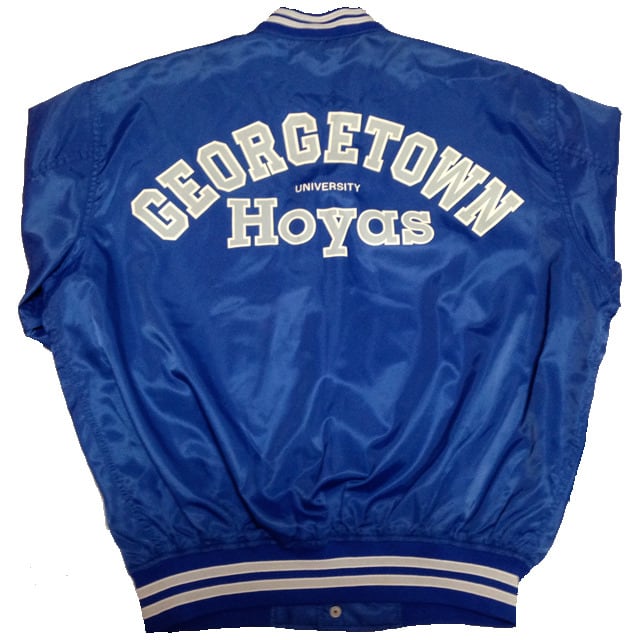 胸にはブルドックの顔と、バックにはGEORGE TOWN Hoyasと書かれておりシンプルなジャケットとなります。