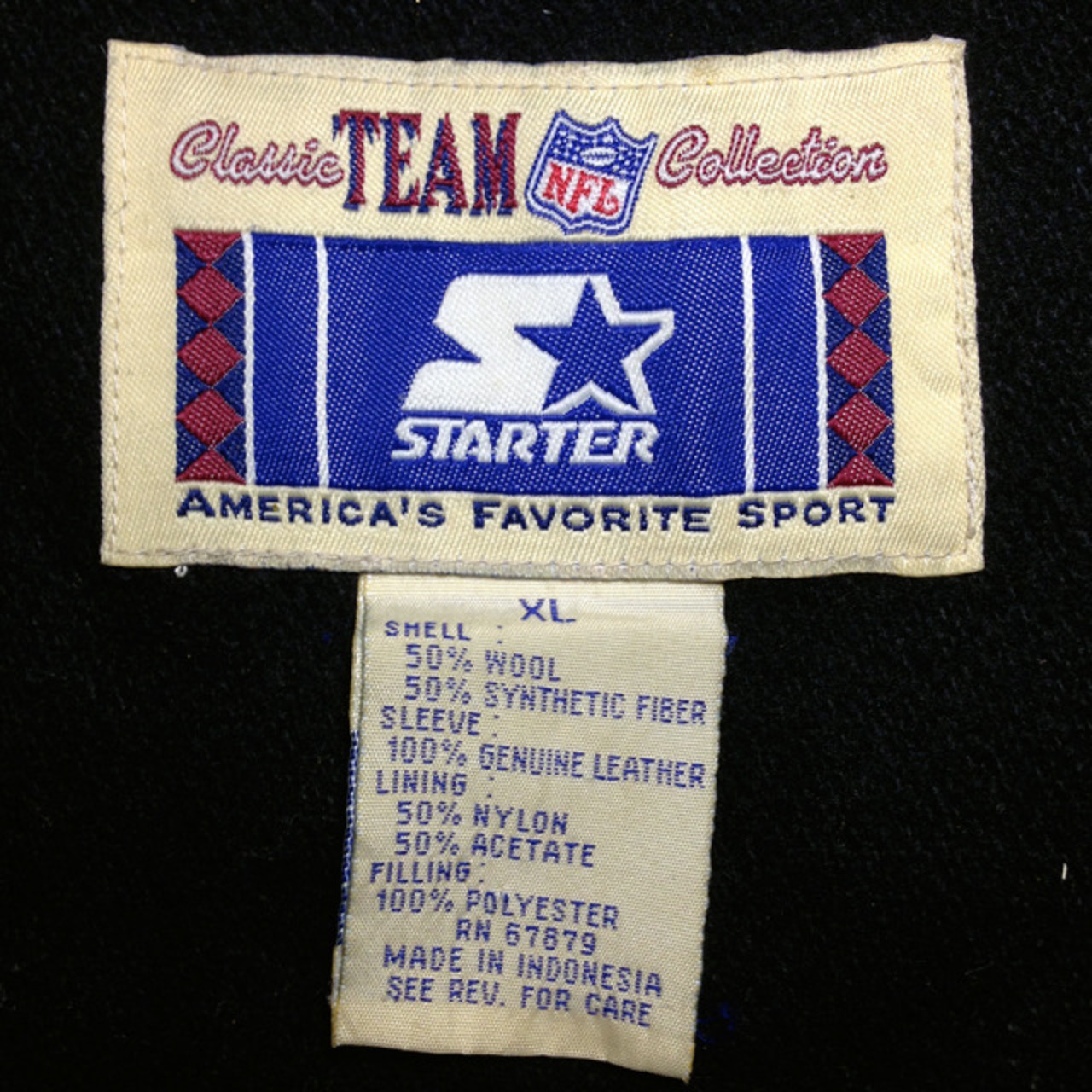 フロントにはRAIDERSの文字、サイドには定番のチームロゴのワッペンが付いており、リストにはSTARTERロゴの刺繍が施されているスタジアムレザージャケットとなります。またスリーブには本革を使用しています。多少汚れあり。