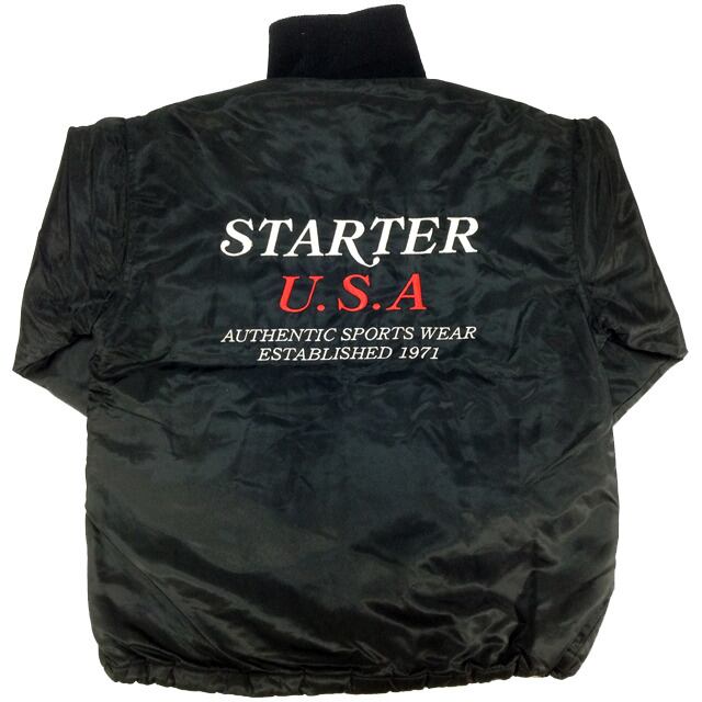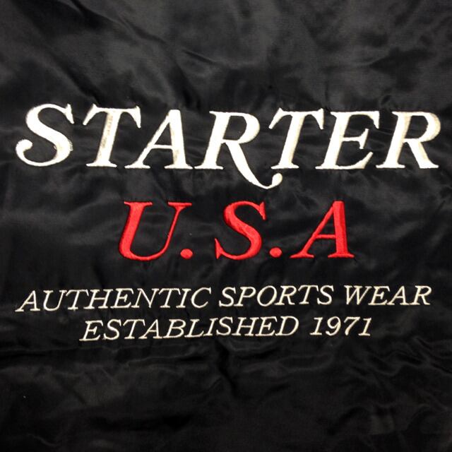 胸にSTARTERロゴと、バックにはSTARTER U.S.A "AUTHENTIC SPORTS WEAR ESTABLISHED 1971"の刺繍が施されており、色合いはシンプルだがインパクトのあるジャケットとなります。