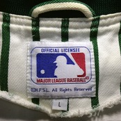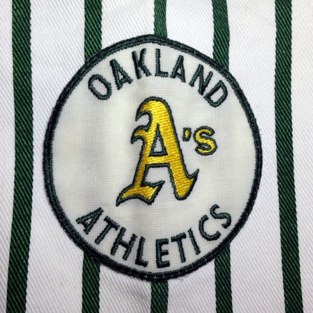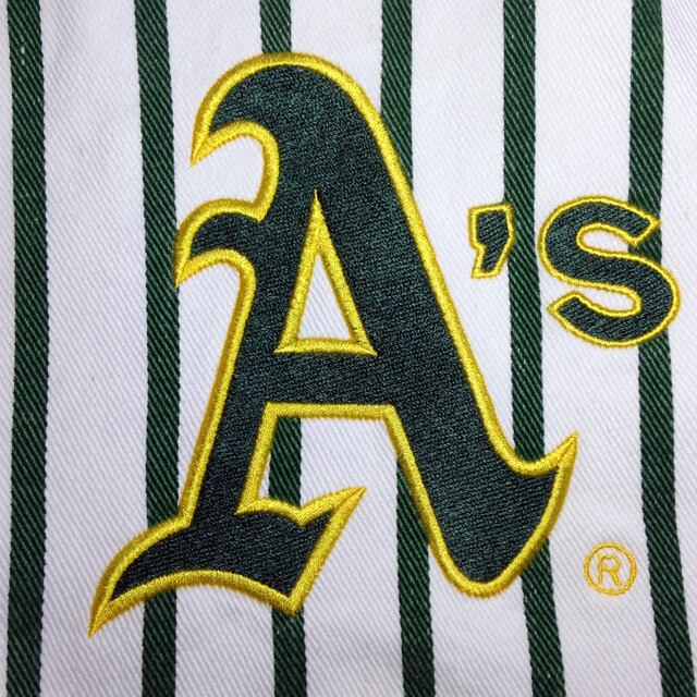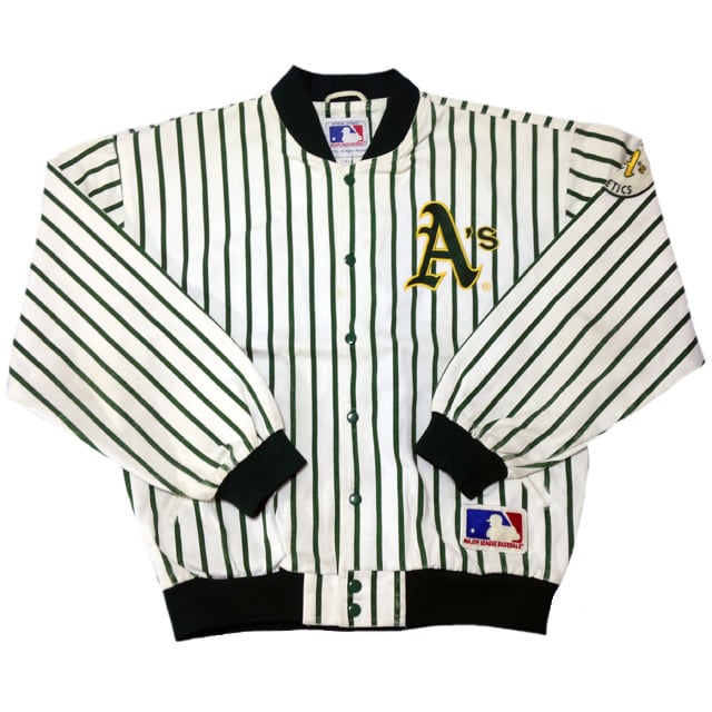 フロントにA'sの定番ロゴ、バックにはATHLETICSの文字があり、ストライプが爽やかなスタジアムジャケットとなります。