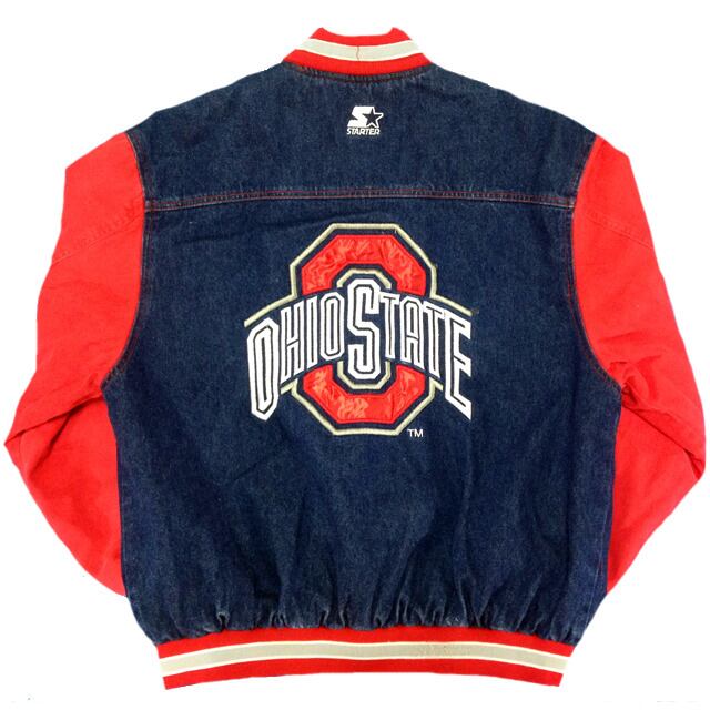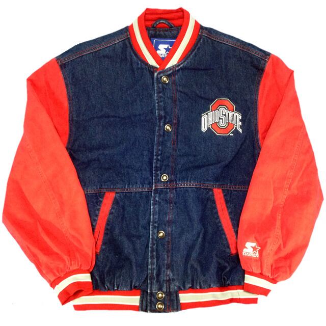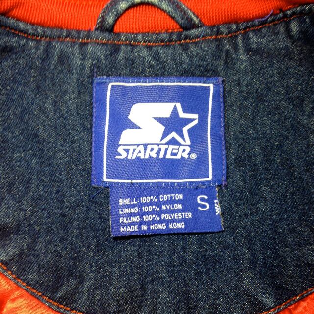 胸とバックにチームロゴと、リストにはSTARTERロゴの刺繍が施され、またデニム生地を使用した高級感のあるスタジアムジャケットとなります。